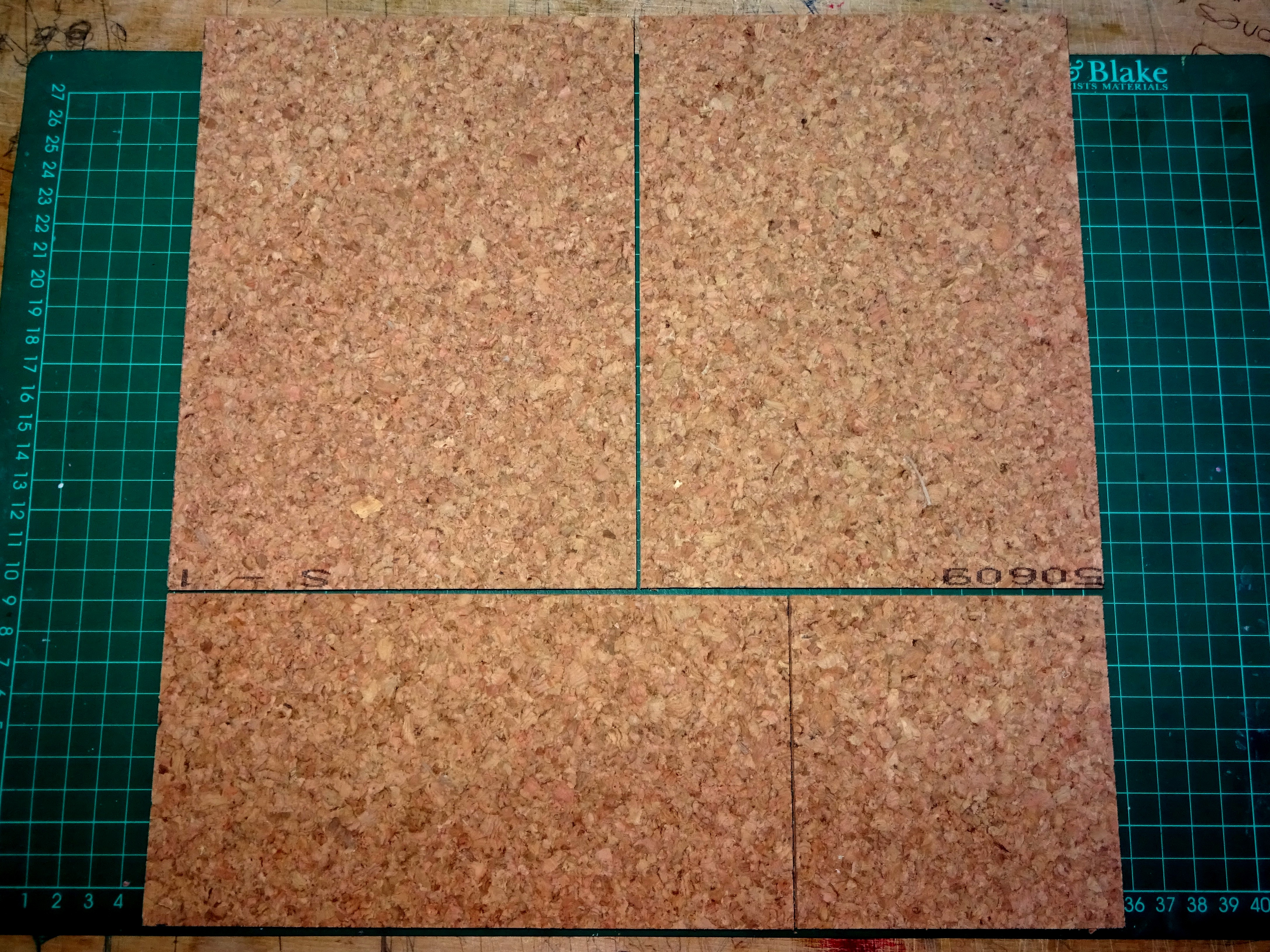 Mark out the shape on the cork and cut to size. I used a 12″ square tile which cuts into 2 8×6″ pieces, 1 8×4″ piece and leaves a 4″ square waste piece (until I find something to use it for!).