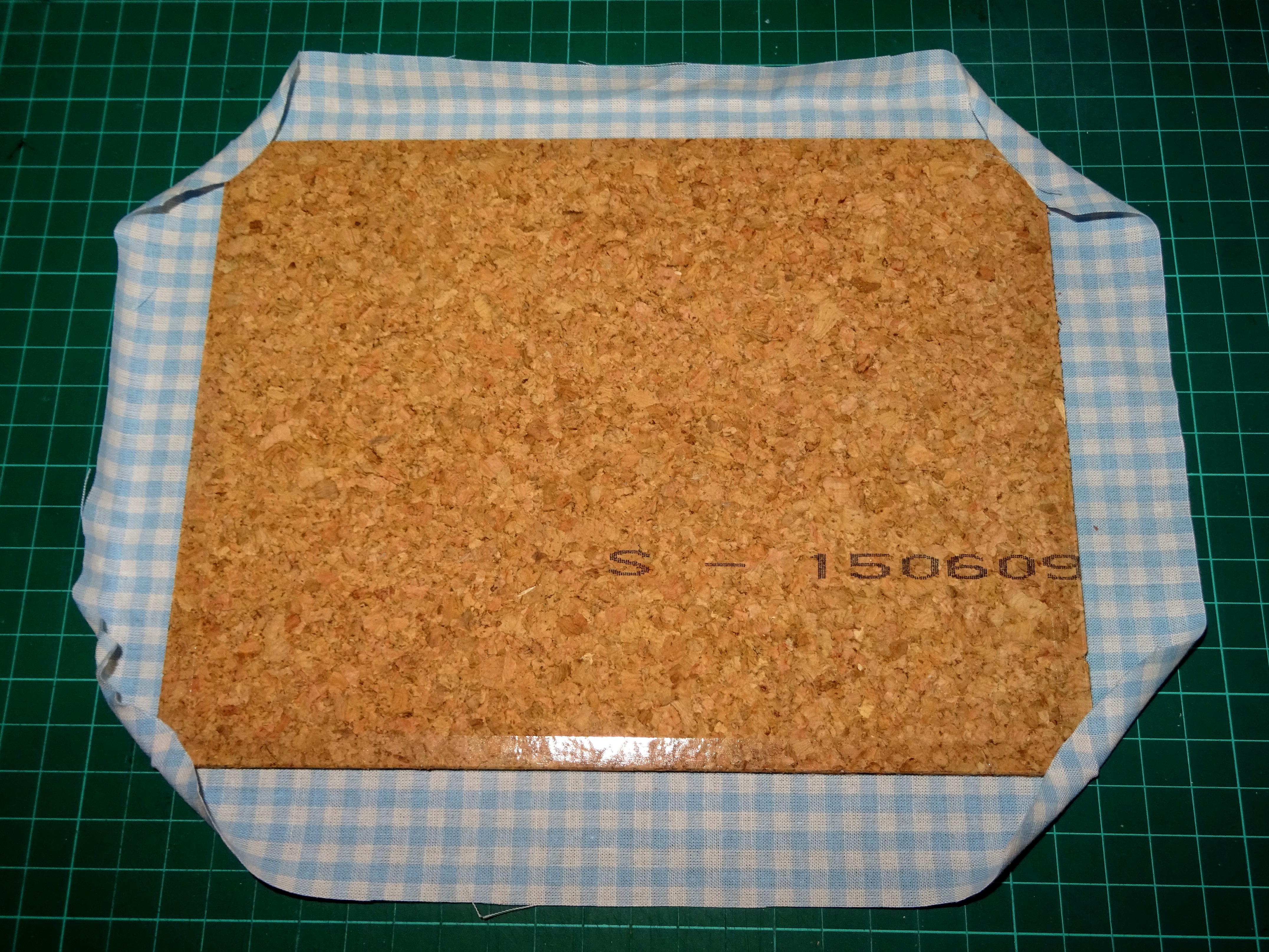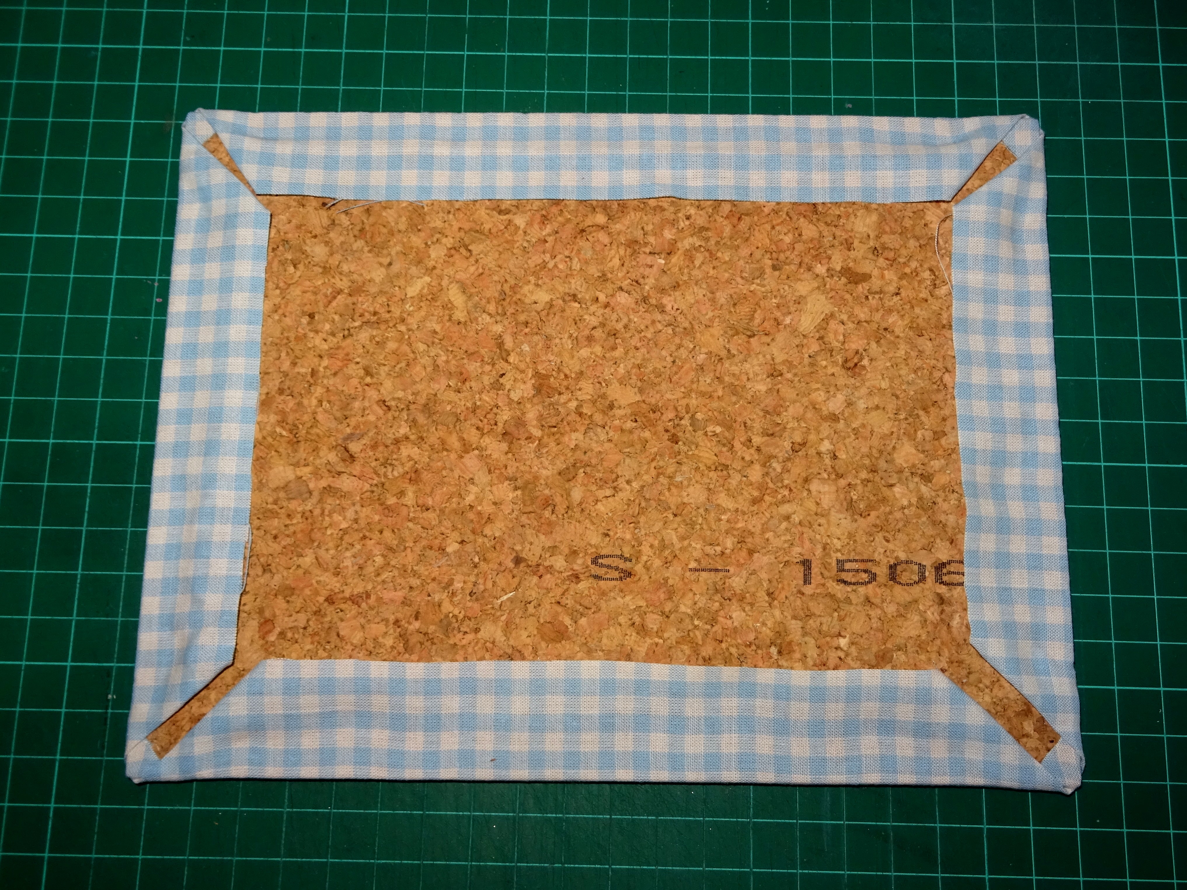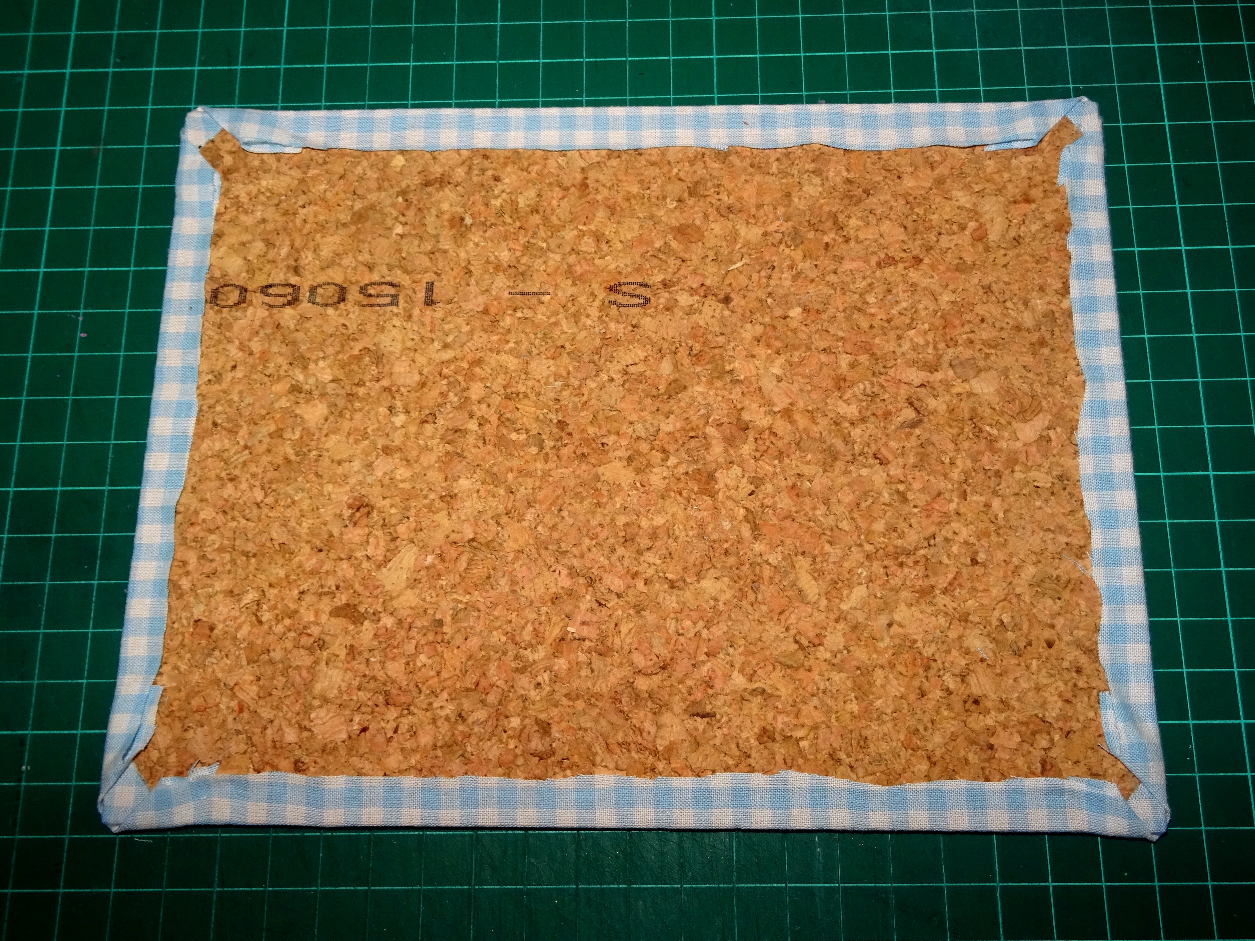 If you are using a lining fabric, stick this to the front, keeping it taut, and trim to the same size as the cork.