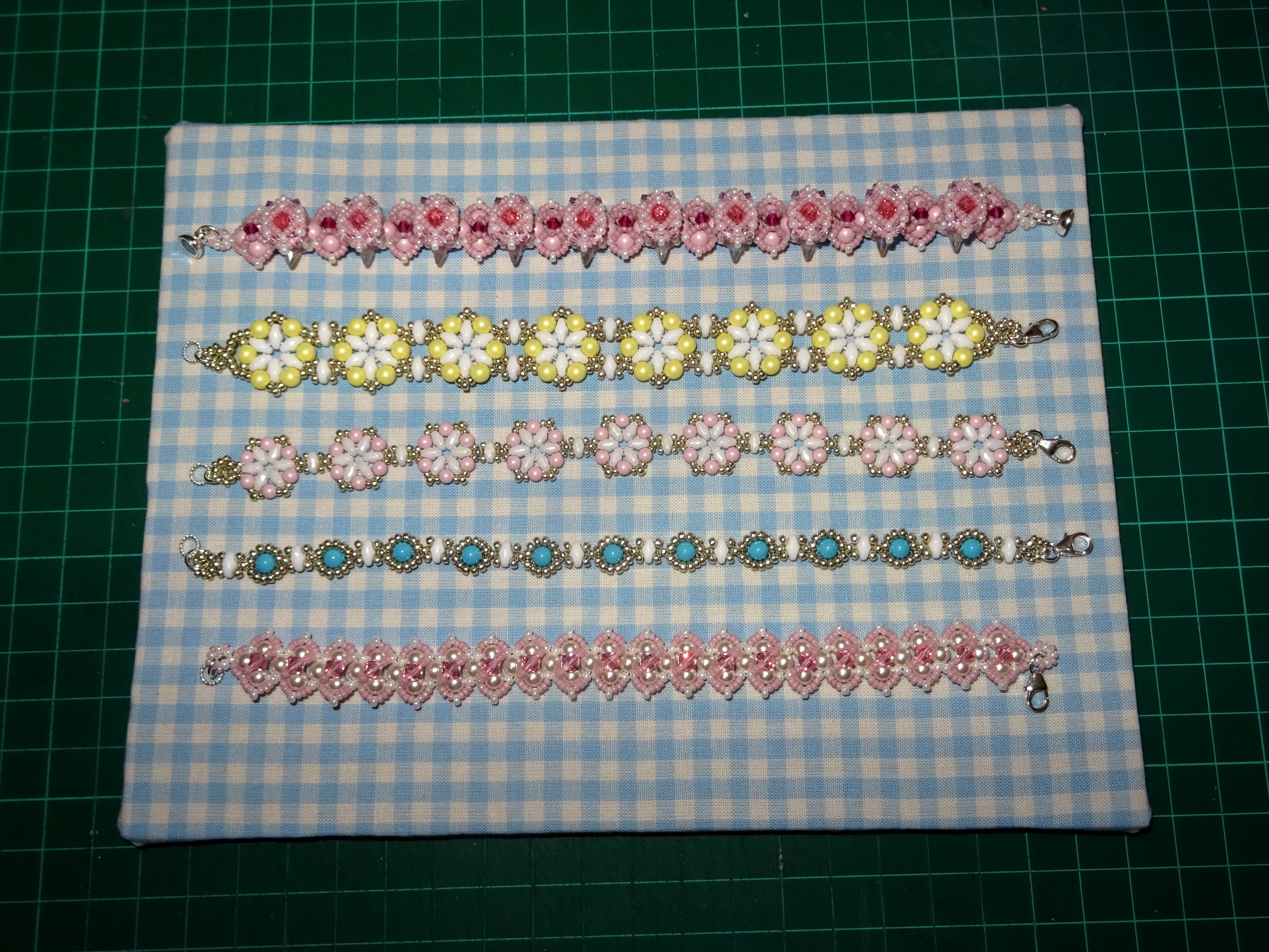 Still on the hunt for some inexpensive display solutions, I decided to make myself some fabric covered display boards to sit bracelets on. They are not perfect – the corners could be a bit neater – but they are cute, simple to make, and will fit well with my planned studio theme.